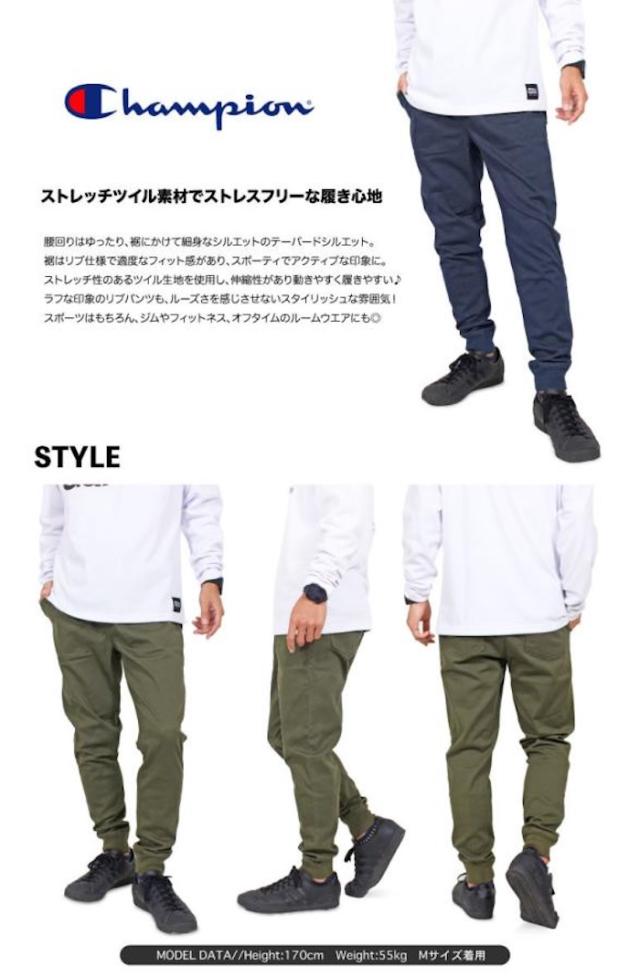 【セール40%OFF】 Champion チャンピオン ストレッチツイル ジョガーパンツ リブパンツ ロングパンツ テーパード スポーツ ルームウェア ダンス ジム 普段着 ワークウェア チノ C3-Z212 裾上げ不可