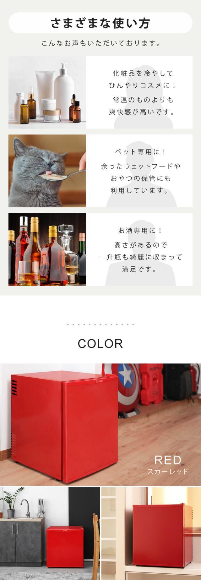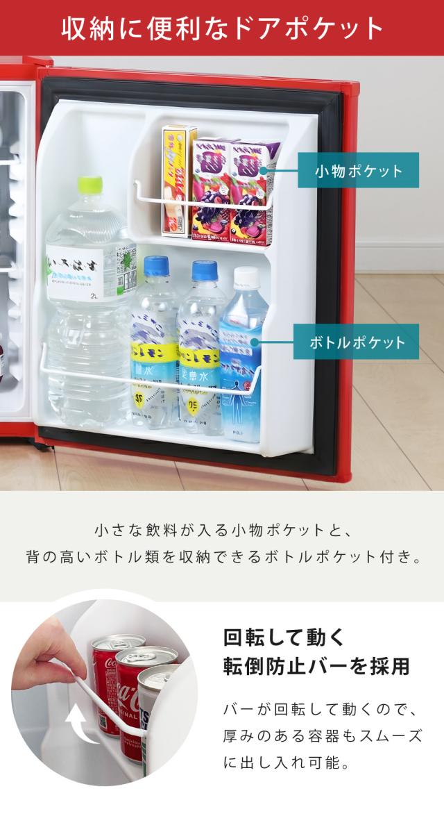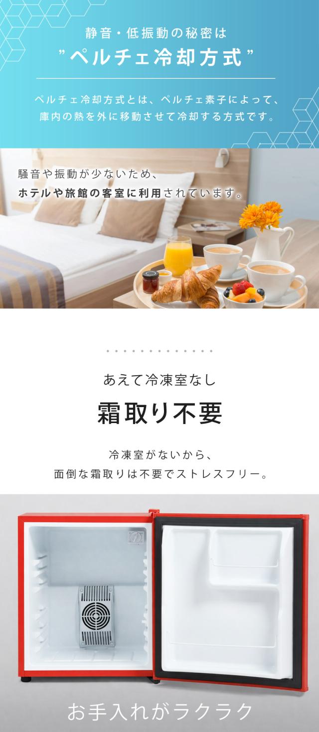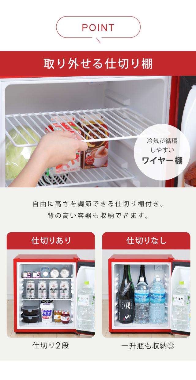 ●温度調節機能。冷やすものによって冷蔵庫内の温度を変えられます。●コンパクト設計。コンパクトな本体サイズで置き場所にも困りません。一人暮らしやお部屋に!多数のホテル・企業様にもご愛顧いただいている大人気モデル
