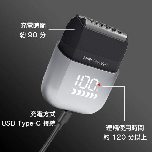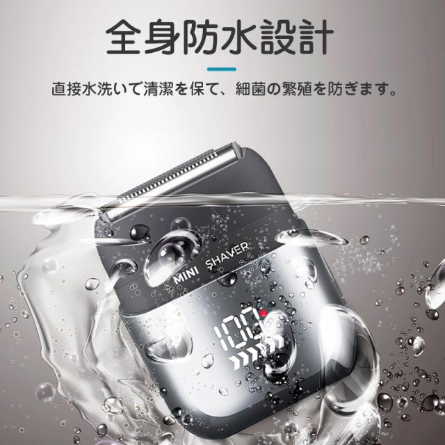 電動シェーバー 髭剃り シェーバー 男性 メンズ 深剃り 回転式 電気カミソリ ミニシェーバー 携帯用 水洗い 軽量 小型 USB充電 残量表示 旅行