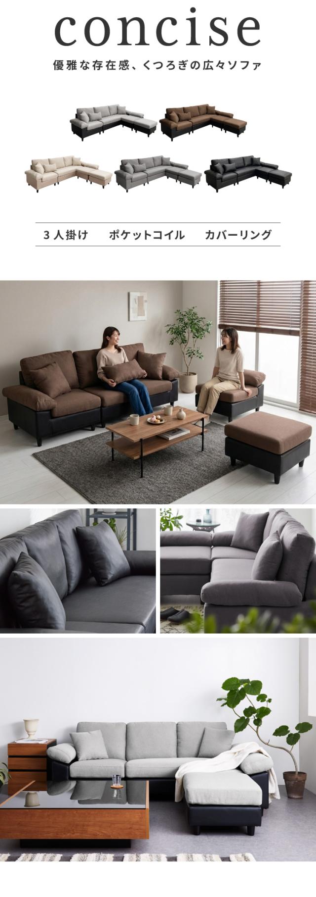 カバーリング ソファ 3人掛け 洗える 幅236 L字型 クッション オットマン コーナーソファ ポケットコイル 天然木 大きめ おしゃれ 北欧 レザー ワイド 4人掛け ソファー 脚 リビング ダイニング(代引不可)【送料無料】