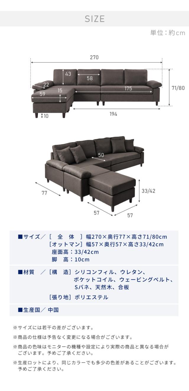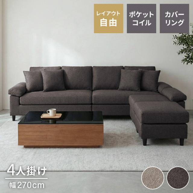 カバーリング ソファ 洗える カウチソファ 幅270 高級生地 大きい 北欧 オットマン ソファー L字 4人掛け 3人掛け オットマン コーナーソファ ポケットコイル 天然木 脚 ローソファ カウチ おしゃれ(代引不可)【送料無料】