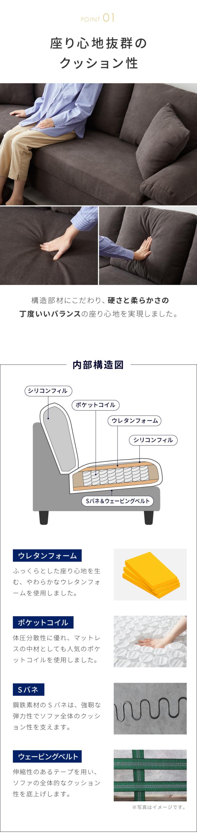 シリコンフィル/ウレタン/ポケットコイル/ウェビングベルト/Sバネ/天然木/合板