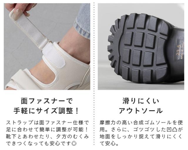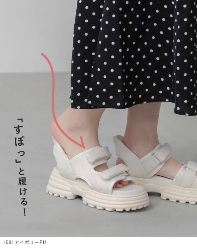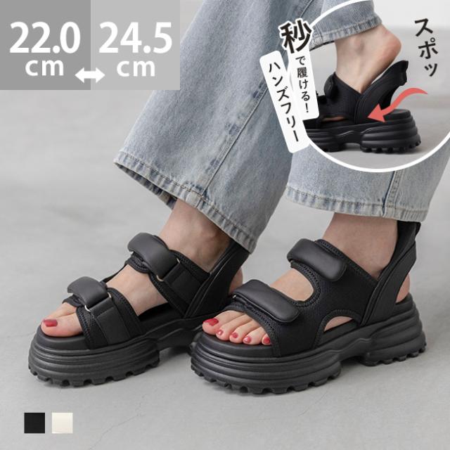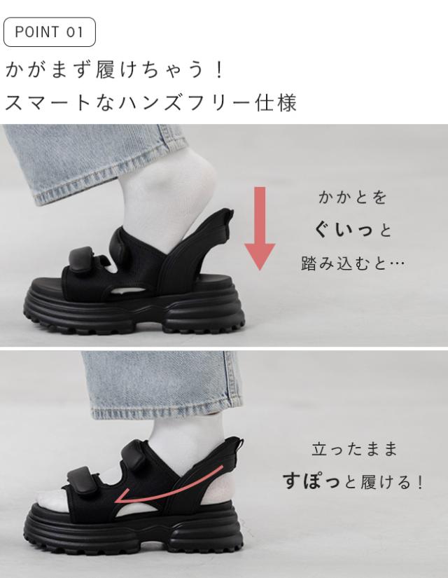 スポーツサンダル レディース 厚底 ハンズフリー 手を使わずに履ける 面ファスナー ベルクロ 送料無料