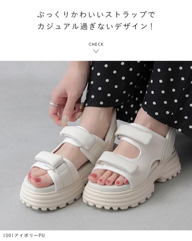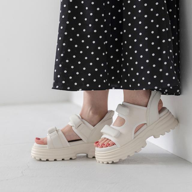 夏の定番スポサンのストラップにぽってり丸みを加えてかわいらしいフォルムに。