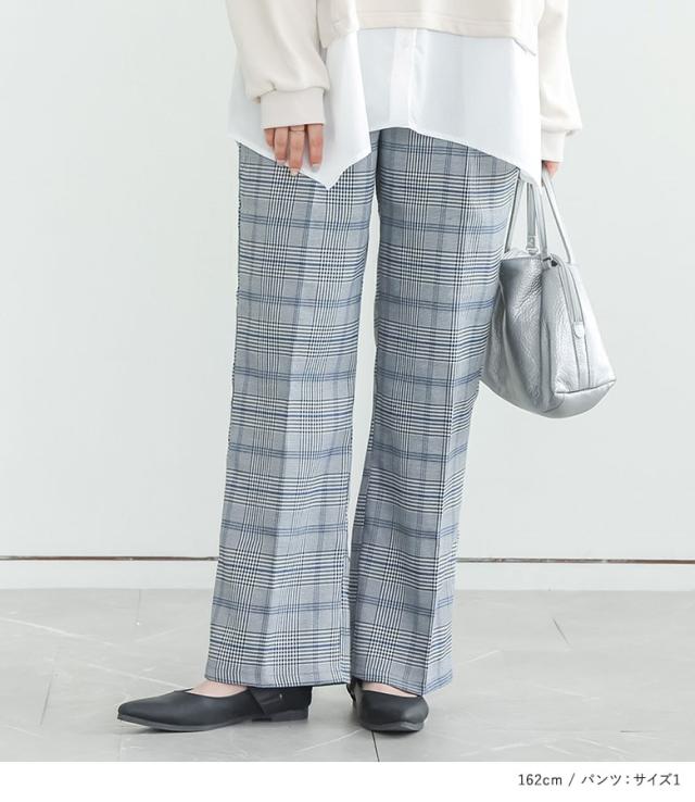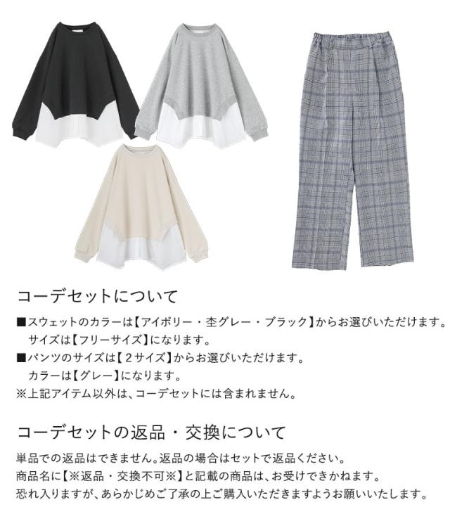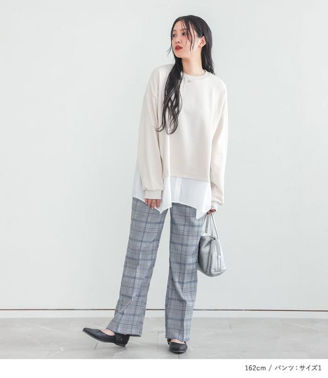 1,000円オフ4日0時迄 『シャツドッキングスウェット×ストレートチェックパンツコーデ2点SET』【メール便不可】【50】[2点コーデセット 2026 レディース スウェット トップス 長袖 トレーナー ストレートパンツ ボトムス チェック柄]
