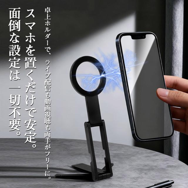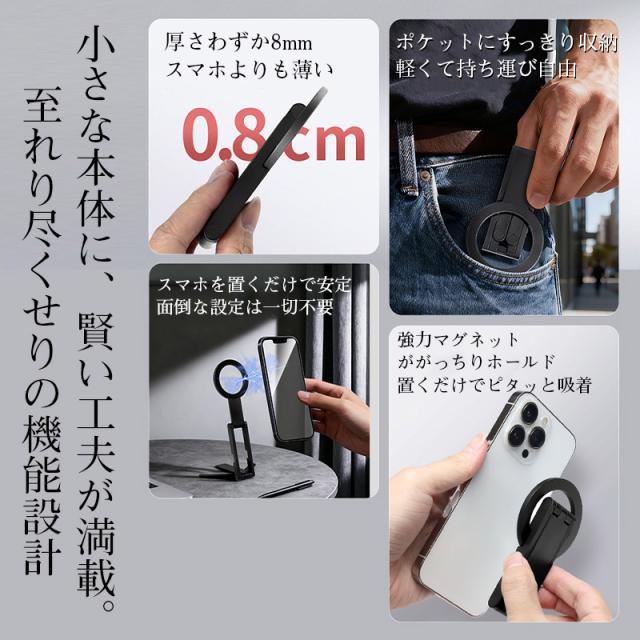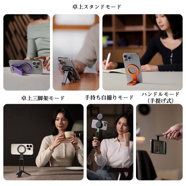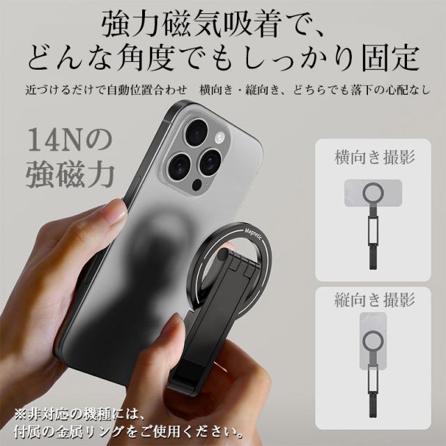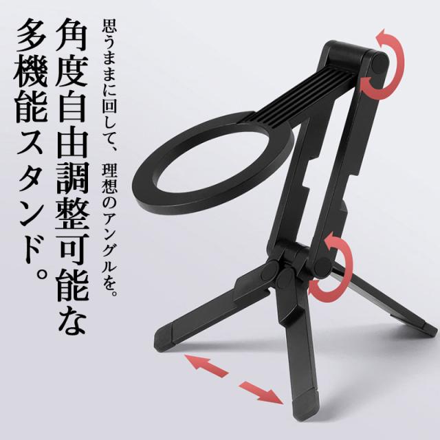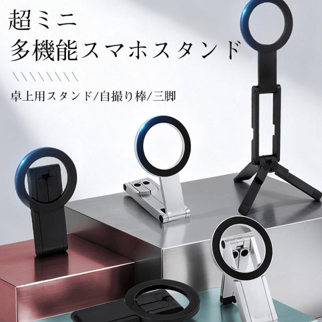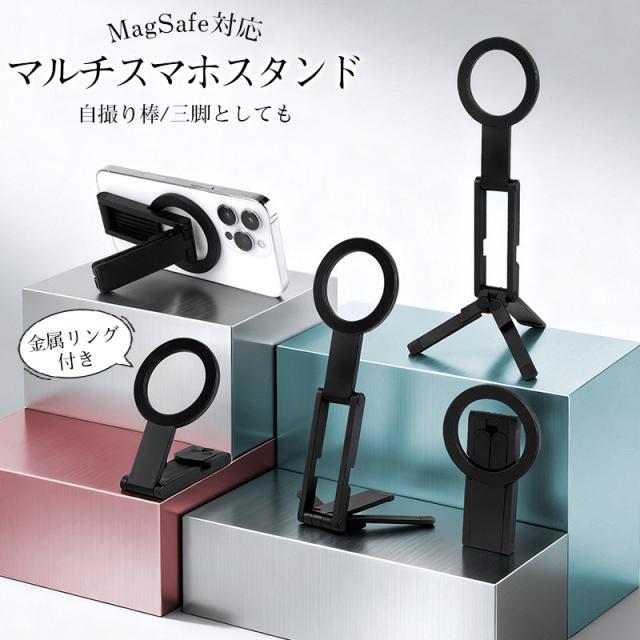2点目500円OFF!スマホスタンド 三脚 自撮り棒 角度調節 iPhone Magsafe 磁石 金属リング マグネット 携帯 持ち運び 動画 撮影