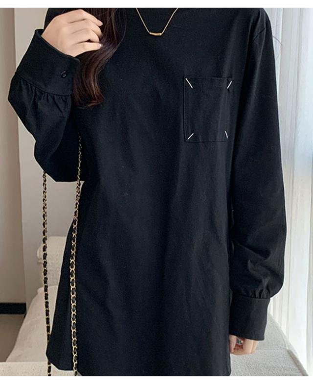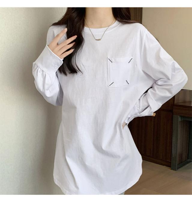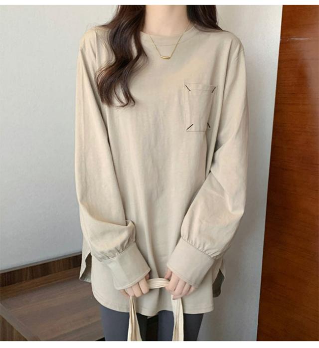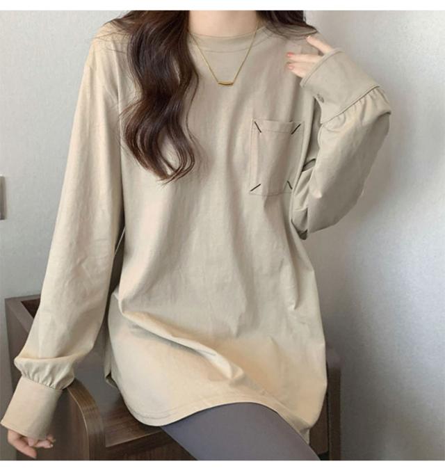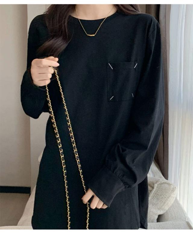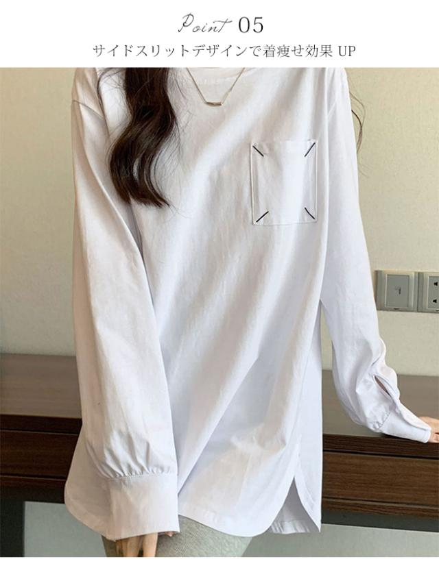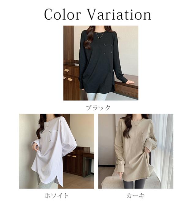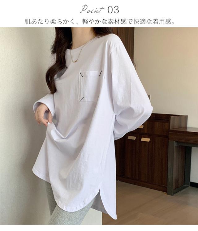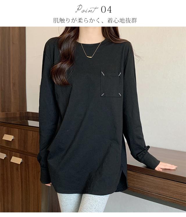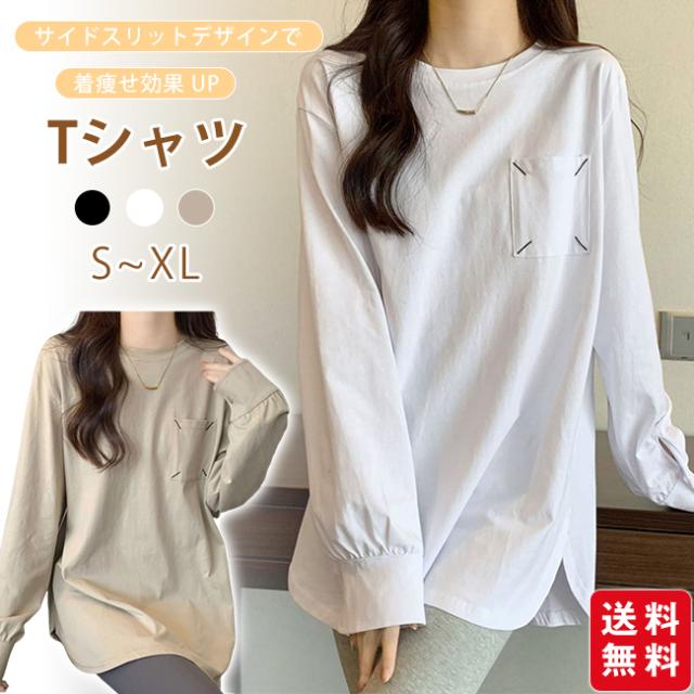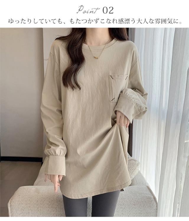 Tシャツ レディース プルオーバー トップス インナー 体型カバー 長袖 無地 クルーネック 春 秋 カジュアル ゆったり
