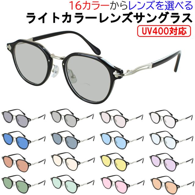 サングラス メンズ レディース UVカット 薄い色 ライトカラーレンズ クラウンパント コンビフレーム 鼻パッド付き ih0302 おしゃれ グレー ブルー グリーン ブラウン ピンク イエロー 夜間運転 パープル 紫外線カット 紫外線対策 UV400 UVケア