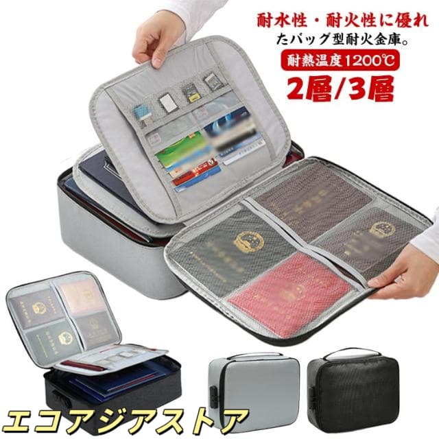 耐火バッグ 保管 耐熱温度1200℃ 書類保管ケース 防水耐火 貴重品入れ バッグ型金庫 鞄 防火バッグ 耐火袋 書類収納バッグ ロック付き 耐火性 防水性 防火性 災害 貴重品 バッグ 軽量 持ち運び 取っ手付き 耐水性