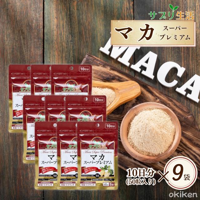 マカ 亜鉛 サプリ サプリメント マカ・スーパープレミアム お試し 10日分 50粒入り×9袋セット 食品保健指導士考案 L-オルニチン アルギニン 活力 栄養補助食品 男性 女性 送料無料 アンフィニプロジェクト