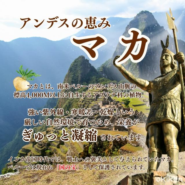 | ■ | 厳選されたペルー産マカを使用 アミノ酸、亜鉛、ミネラルを豊富に含む自然の恵みを1粒に凝縮。 |