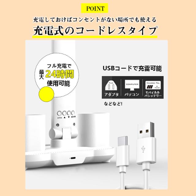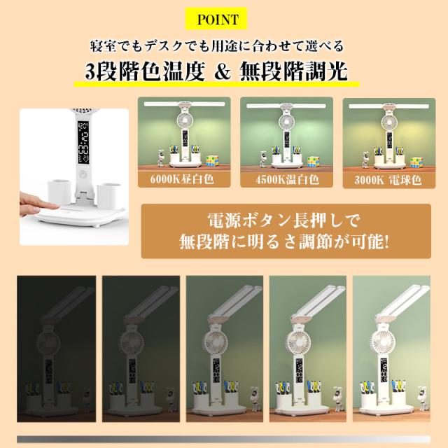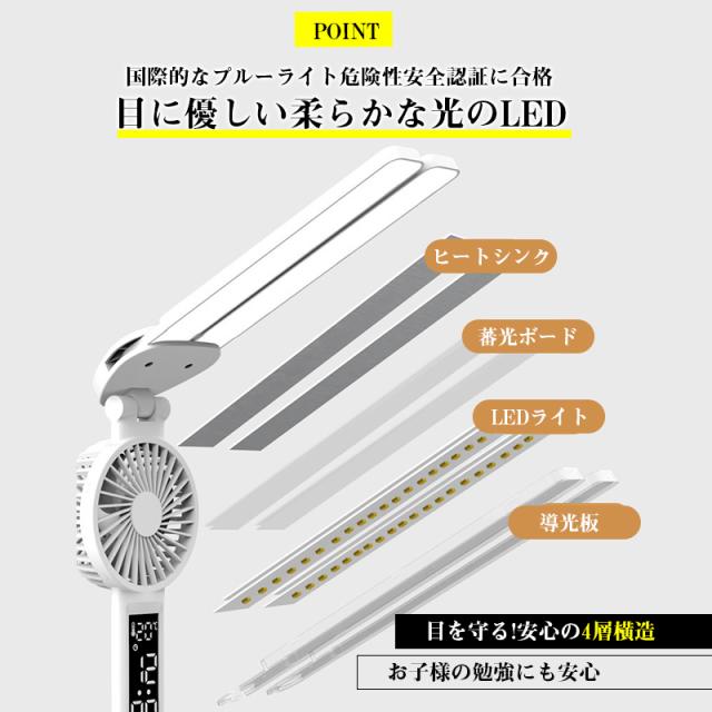 デスクライト led usb 学習机 充電式 コードレス 子供 明るい 目に優しい ledライト 勉強 倉庫 屋外 災害 非常用 ファン付きスタンド