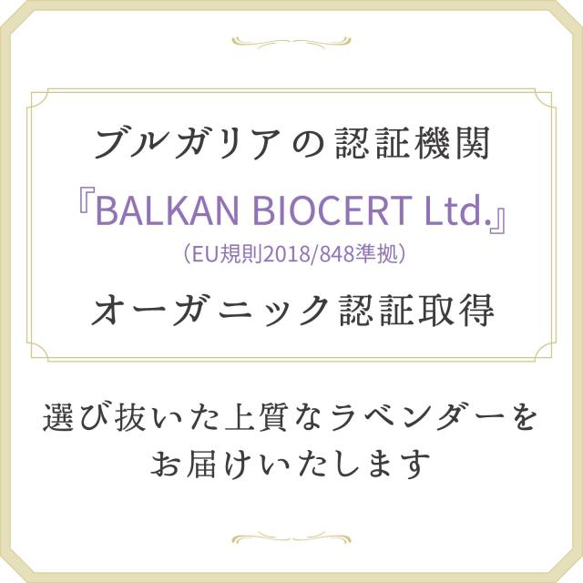 ブルガリアの認証機関『BALKAN BIOCERT Ltd.』(EU規則2018/848準拠)のオーガニック認証を取得しています。