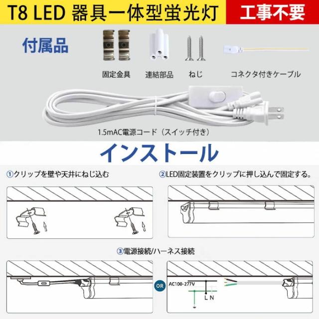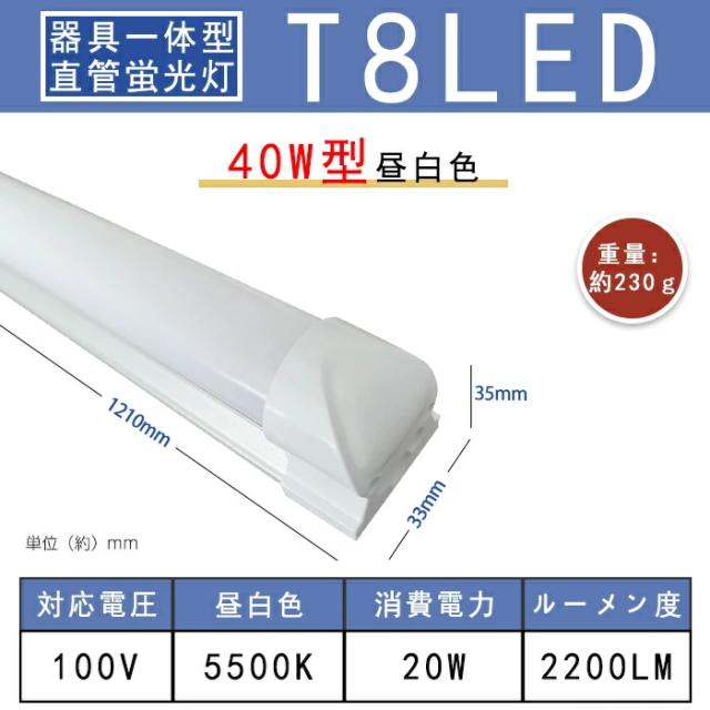 LED蛍光灯 器具一体型 T8 器具一体型 40W形 LED蛍光灯 20w形 T8 直管型 LED器具一体 120cm 60cm 昼白色 5500k 高輝度 省エネ 蛍光灯器具 LED ライト8本連結可 ベースライト ライトリビング オフィス学校 キッチン用ライト 1年保証