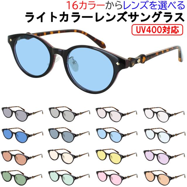 サングラス レディース UVカット 薄い色 ライトカラーレンズ ボストン フォックス セルフレーム 鼻パッド付き ih72398 調整可能 おしゃれ グレー ブルー グリーン ブラウン ピンク イエロー 夜間運転 パープル 紫外線カット 紫外線対策 UV400 UVケア