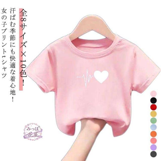 キッズ 子供服 ベビー 通気性 トップス 半袖Tシャツ キッズトップス Tシャツ Tシャツ 女の子 プリントtシャツ 柔らかい 快適 ハート ガールズ