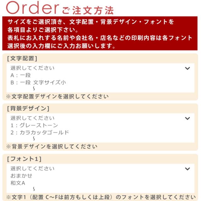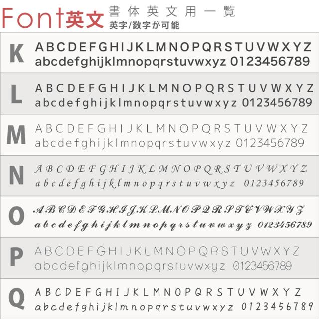 デザインだけでなく、フォント(書体)17種類、サイズは4種類から組み合わせていただけます。