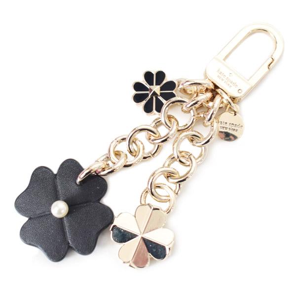 ケイトスペード キーホルダー katespade レザー メタル パール フラワー ダングル ロゴ キーフォブ チャーム バッグチャーム ブラックマルチ KM718