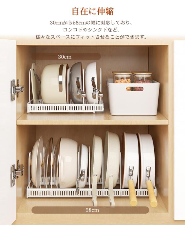 春新作 フライパンスタンド 伸縮 コンロ下 シンク下収納 フライパン収納 シンク下 フライパン収納 キッチン収納 鍋 蓋 立てる収納 調理器具 フライパン置き 台所 整理 収納上手 整う おしゃれ