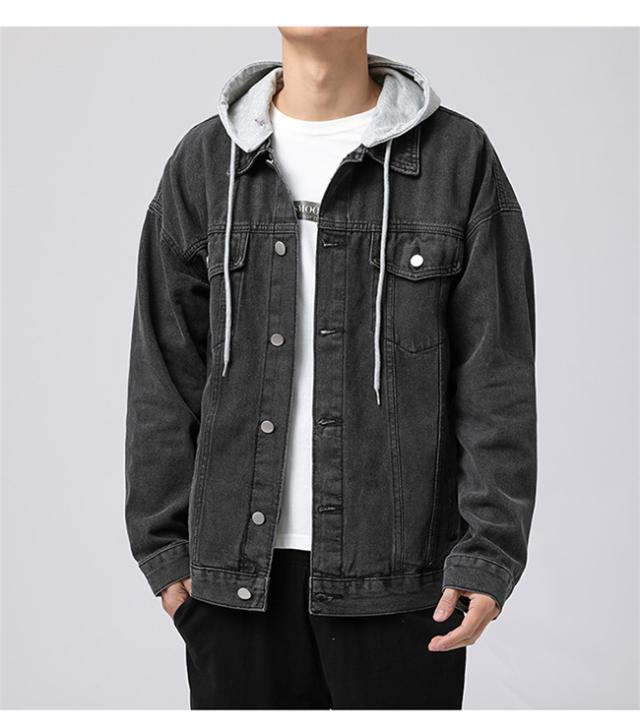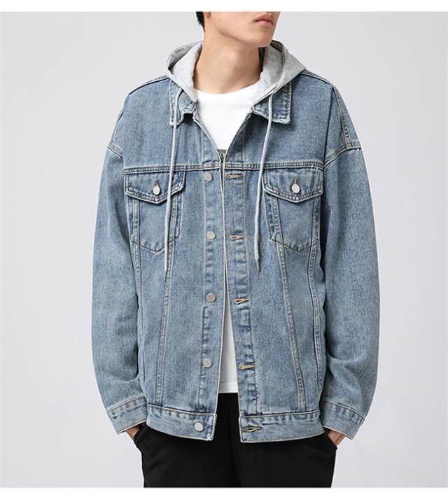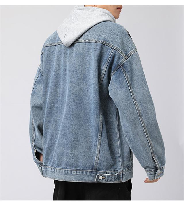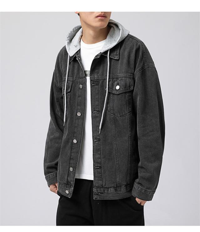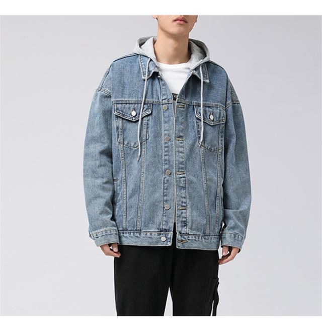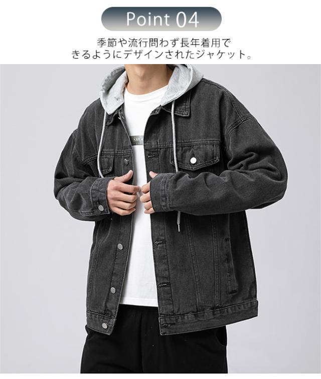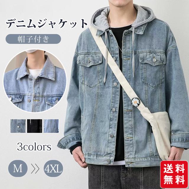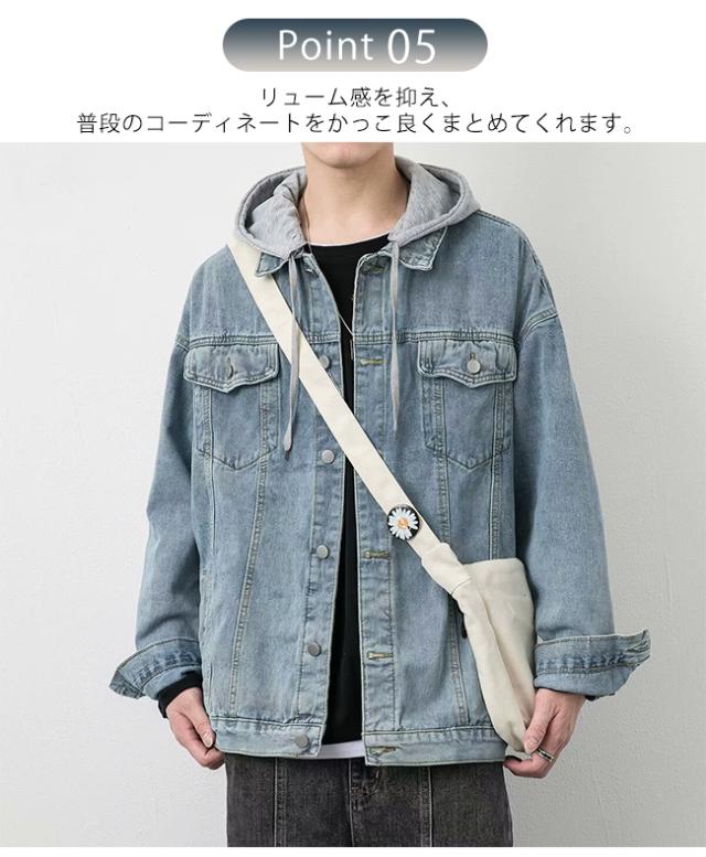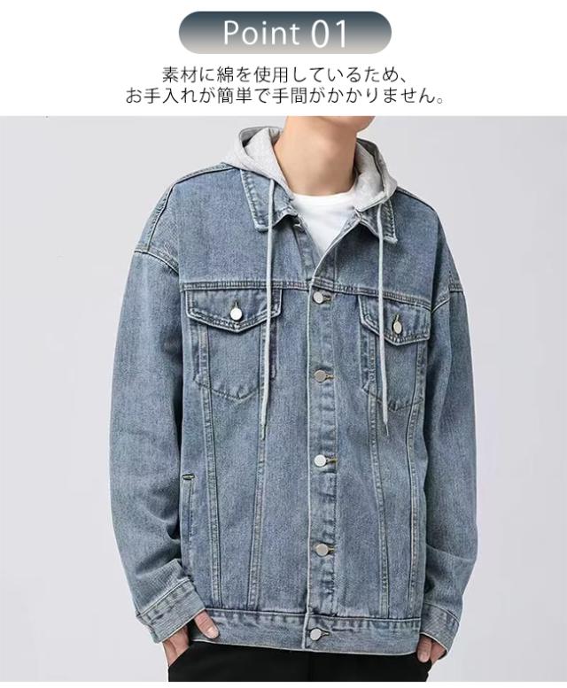 春新作 デニムジャケット メンズ 重ね着風 帽子付き 長袖 トップス ブルゾン ジャケット ジージャン Gジャン ゆったり 体型カバー かっこいい 着痩せ 個性的 春秋冬