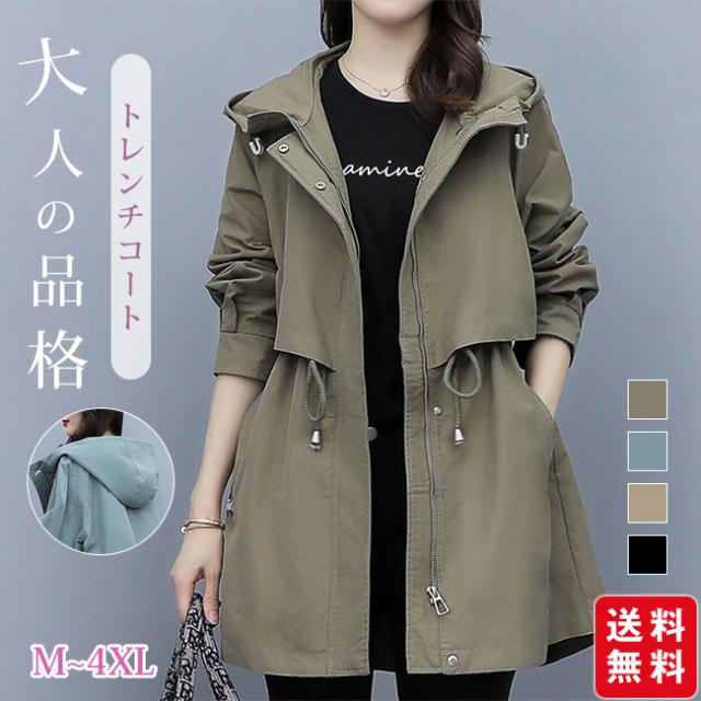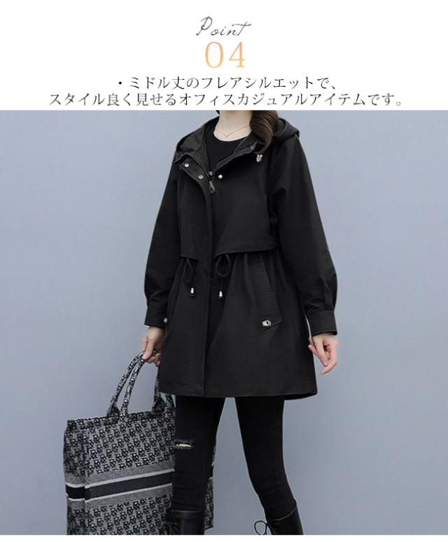 春新作 トレンチコート レディース コート ミドル丈 フレアシルエットオフィスカジュアル 春秋用 シンプル 高級感 スッキリ 無地