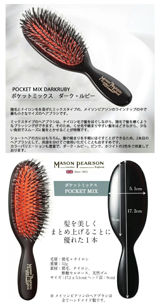 MASON PEARSON メイソンピアソン ポケットミックス POCKET MIX ヘアブラシ クシ 櫛 ダークルビー ブルー ピンク 猪毛 ヘアケア イギリス製