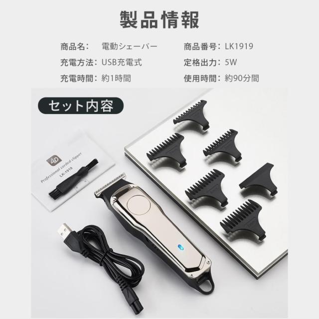 バリカン 電動 散髪 静音 軽量 USB充電式 コードレス プロ仕様 刈り上げ ツーブロック セルフカット 簡単 髪の毛 男性 調節可能 メンズ