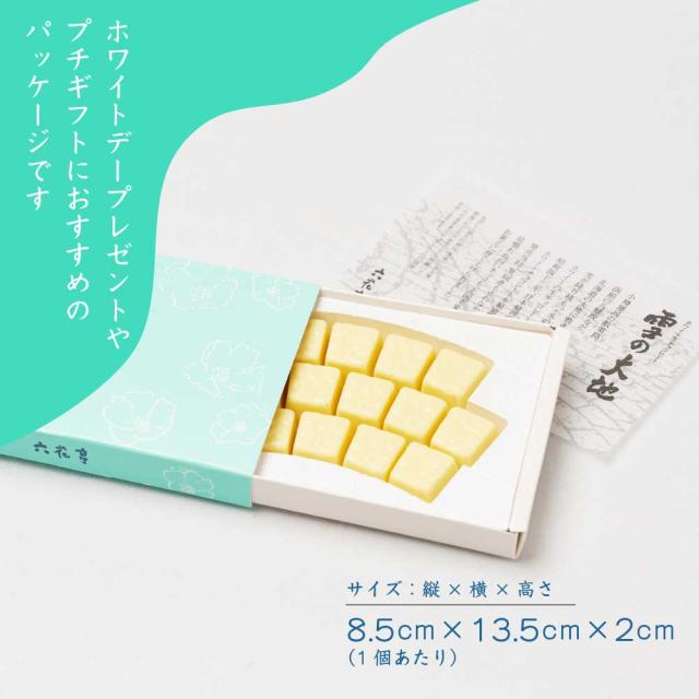 石畳に雪が降り積もった、北国ならではの情景をホワイト生チョコレートで表現しました。