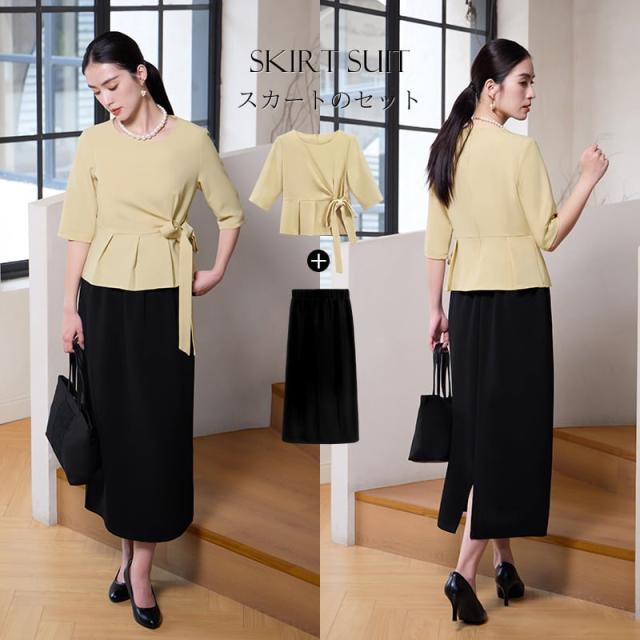 オールインワン セットアップ レディース 入学式 卒業式 服装 ママ 母 服 スカート 体型カバー 黒 入園式 卒園式 オフィス 七五三 結婚式 おしゃれ