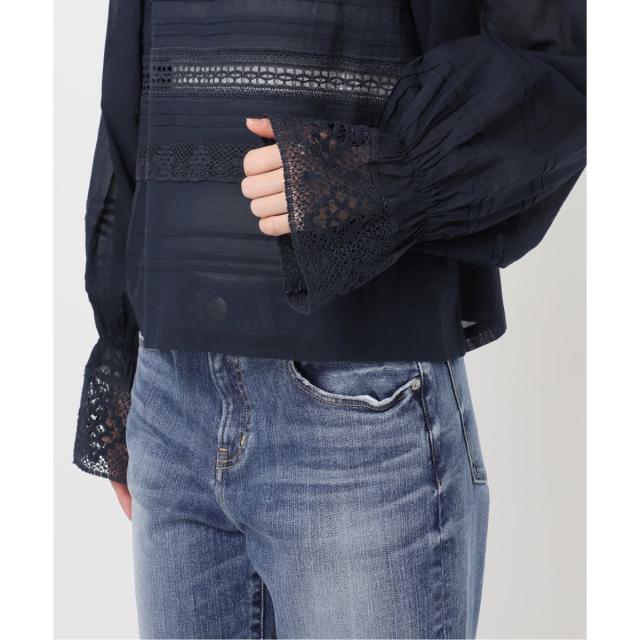 カフスにレースをあしらった袖口はゴム仕様なので、ブラウジングするとフェミニンな魅力がさらに引き立ちます。