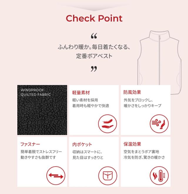 アルメデスのボアベストは、秋冬の防寒に最適な一着です。軽量でありながら暖かく、もこもこのフリース素材が快適な着心地を提供します。ジップアップの前開きデザインにより、着脱が簡単で、内ポケットも備えているため、実用性も抜群です。アウトドアやゴルフ、部屋着としても活躍し、男女兼用で幅広いシーンに対応します。シンプルでスタイリッシュなデザインが、さまざまなコーディネートにマッチします。