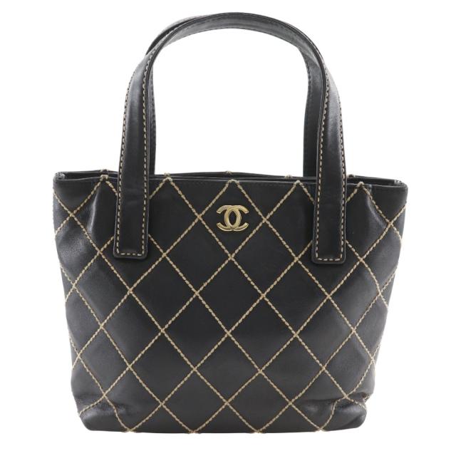 CHANEL シャネル ワイルドステッチ カーフ 黒 ハンドバッグ レディース 【中古】