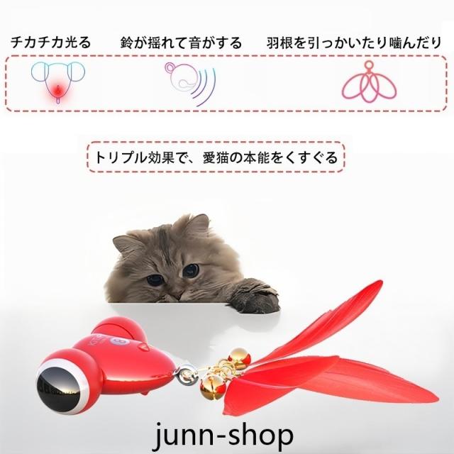 猫 おもちゃ 電動 ねこじゃらし USB充電 フェザー & 鈴交換可能 猫 一人遊び 健康維持用 ランダムな動き 障害物回避センサー ストレス解消/運動不足解消 猫ちゃん狩猟天性満足
