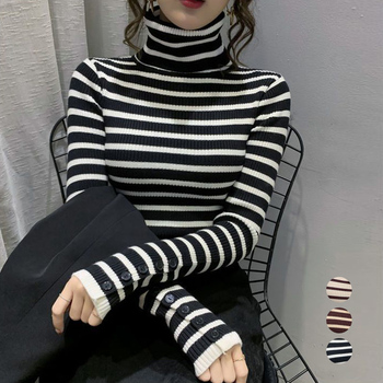 ボーダー柄ニットトップス タートルネック 送料無料 即日発送