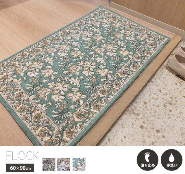 送料無料 玄関マット マット 室内 屋内 フロック/60×90cm 洗える おしゃれ 滑りにくい 滑り止め 花柄 かわいい ※イエローのみの特価販売です イエロー 黄色 風水 ゴブラン 北欧