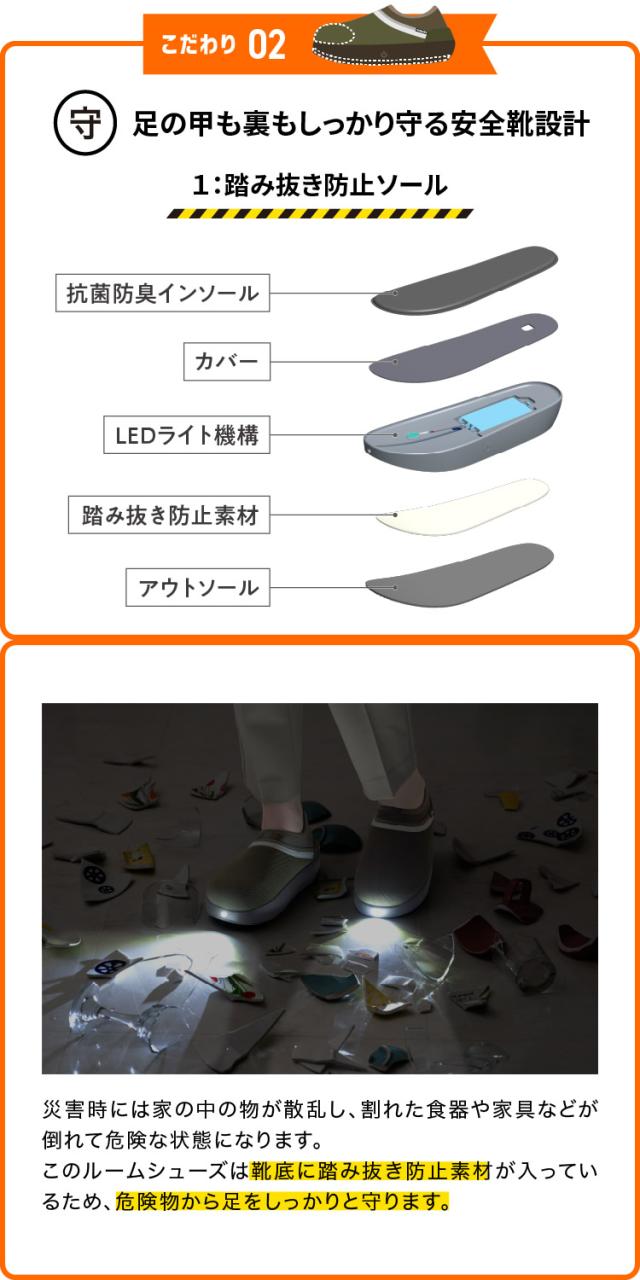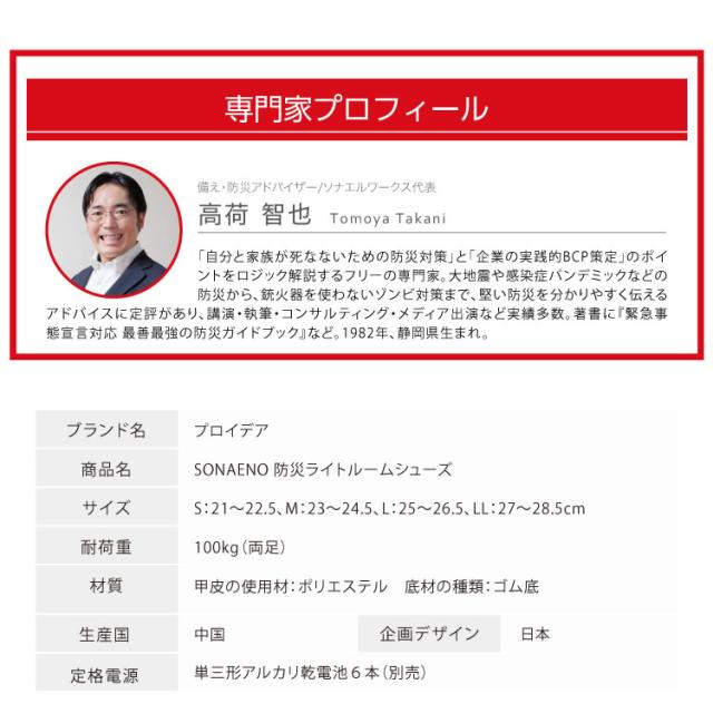 PROiDEA プロイデア 防災シューズ 防災靴 LEDライト付き ルームシューズ 履くと光る 安全靴 防災サンダル 防災アドバイザー 高荷智也 監修 災害対策 防災グッズ 室内履き 防災 ルームスリッパ 普段使い