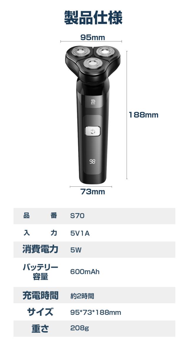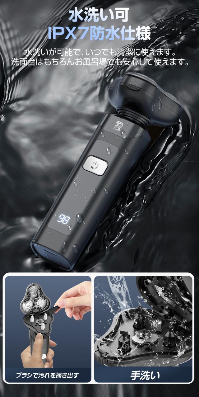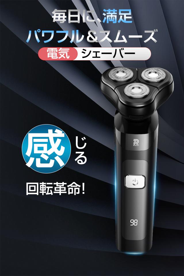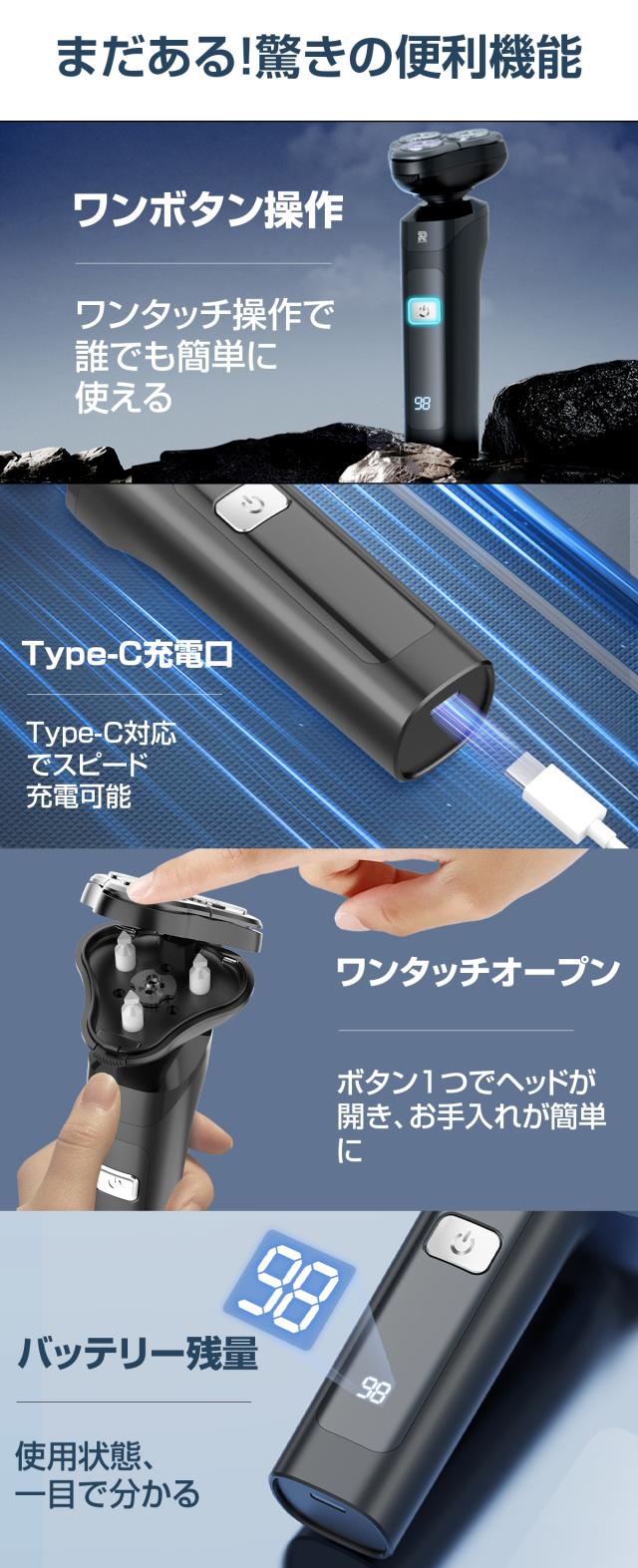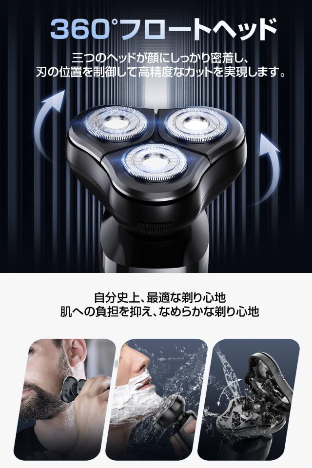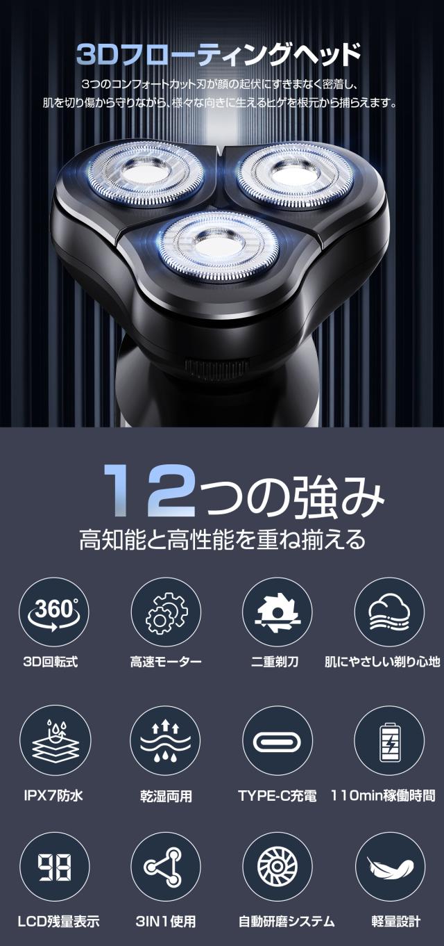シェーバー メンズ 髭剃り 多機能電気シェーバー 3IN1 ひげそり 電動ひげそり 回転式 3枚刃 LCD電池残量表示 IPX7防水 type-c充電式 ロック機能 トリマー刃付