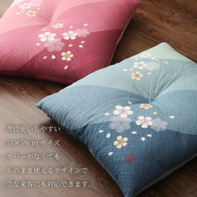 座布団 銘仙判 約55×59cm さくら柄 日本製 同色5枚組 カバーなしでそのまま使える柄物の座布団