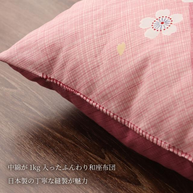 座布団は、カバーなしでもそのまま使える、桜柄の柄物の日本製座布団です。