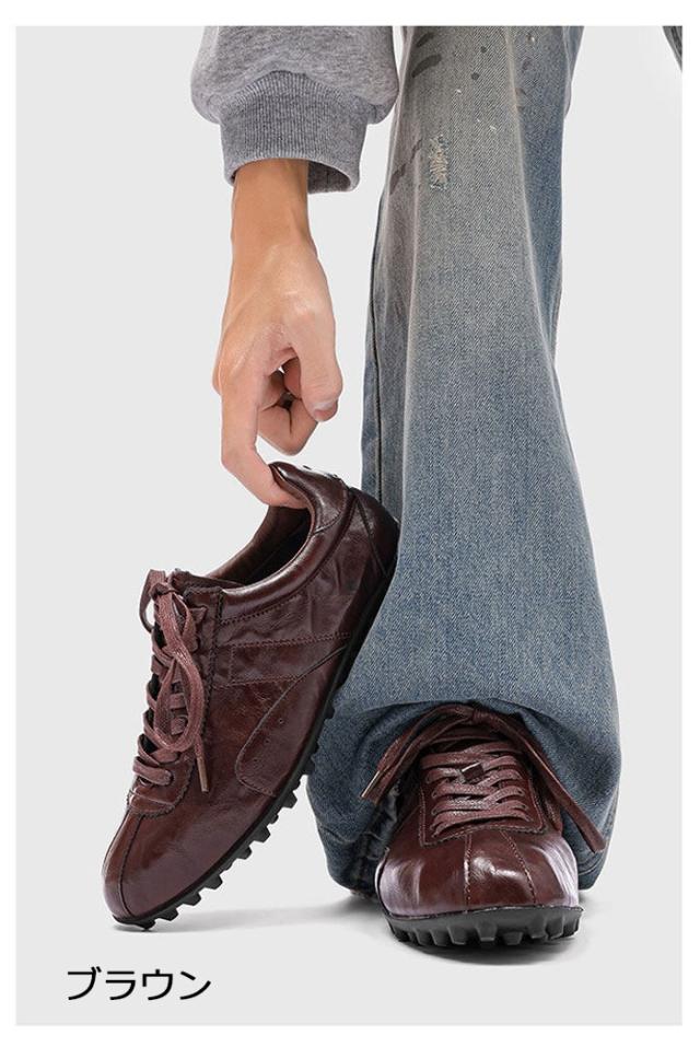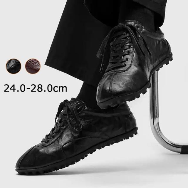 スニーカー メンズ 革靴 カジュアル シューズ ビジネスシューズ 革靴 ウォーキング 軽量 紳士靴 レザー レースアップ 黒 カジュアル 履きやすい靴 ゴルフ 革靴風スニーカー ブラック ブラウン 24.0-28.0