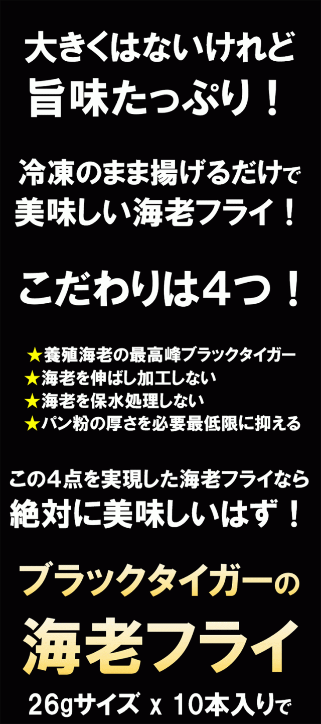 ブラックタイガーの海老フライ 10本入り “無保水”でしっかり海老の味わい 冷凍のまま揚げるだけ 簡単調理
