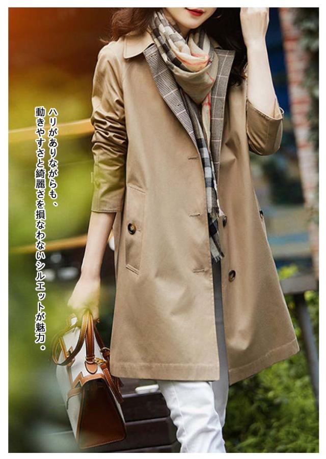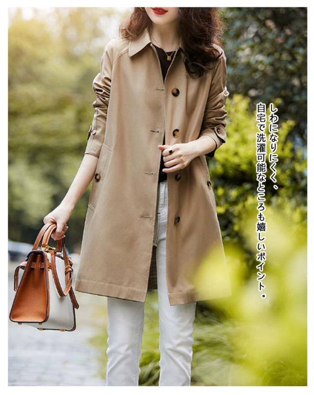 ステンカラーコート レディース ミディアム トレンチコート 春 秋 アウター スプリングコート 春コート カジュアル ゆったり 大きいサイズ 体型カバー 裏地あり ライトアウター 春物 秋物 シンプル 無地 通勤 OL オフィス お出かけ 通学