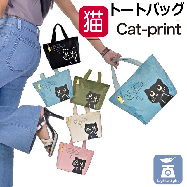 トートバッグ 手提げ 肩掛け 猫柄 カジュアル レディース ランチ 通勤 通学 A4入る ポケット ファスナー 布 ナイロン 軽量 便利 かわいい おしゃれ 猫雑貨 ネコグッズ 猫好き ギフト プレゼント 【 誕生日 】