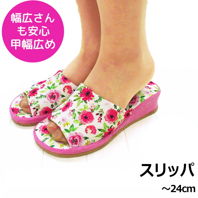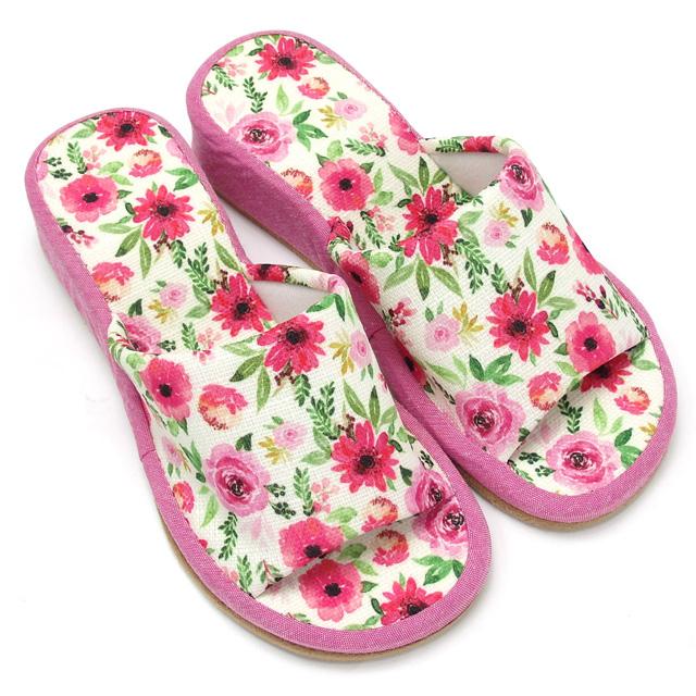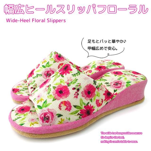 スリッパ 花柄 フローラル ピンク 幅広 ヒール 5cm 前あき レディース 室内履き ルームシューズ おしゃれ かわいい 室内 卒園式 美脚 入園式 会社 卒業式 入学式 授業参観 姫系 誕生日 ギフト プレゼント