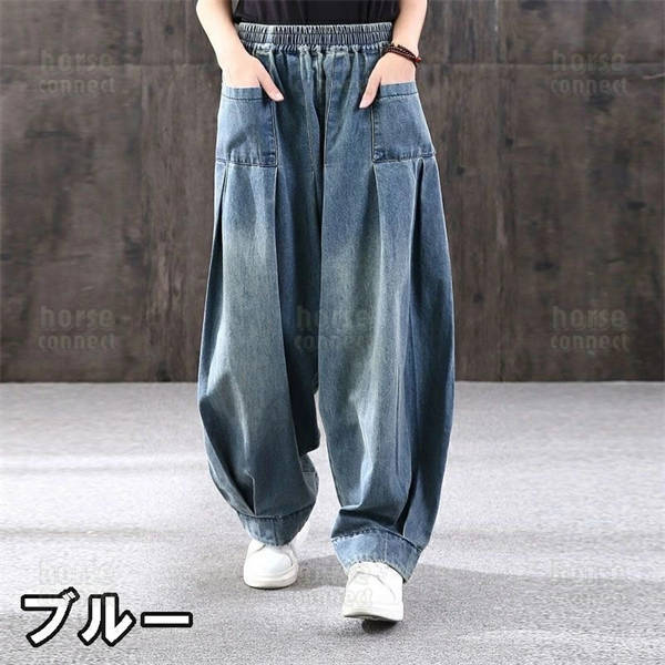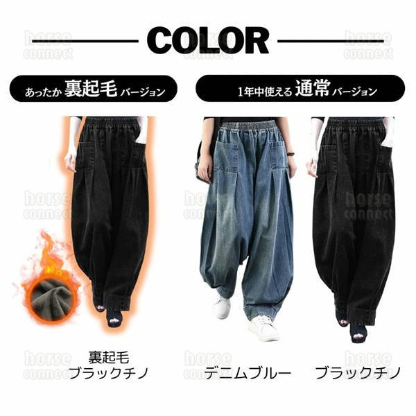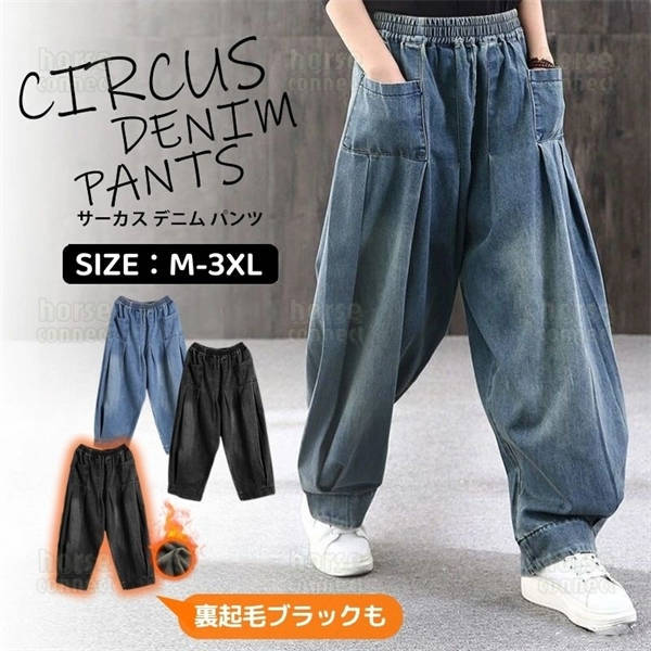 デニム サルエルパンツ レディース 選べる 裏起毛 タイプ 極暖 裏フリース 深ゆるまた サーカス ワイド デニム パンツ レディース 大きいサイズ ウエストゴム ゆったり ジーンズ レディース ワイド 体型カバー ボーイフレンド