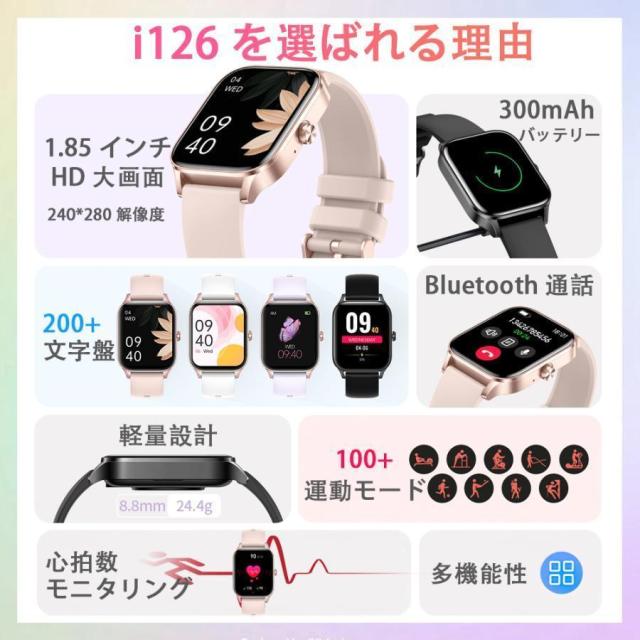 女性周期、カメラ、音楽制御、アラーム、着信通知、天気予報など日常生活に実用な機能満載!24時間健康管理、血圧、血中酸素、心拍数などご自分に関わる機能搭載されており、常に気を配り、状況を詳しく把握することができます。また睡眠時間や睡眠の質を正確に計測できる、意識的にスケジュールや習慣などを改善します。