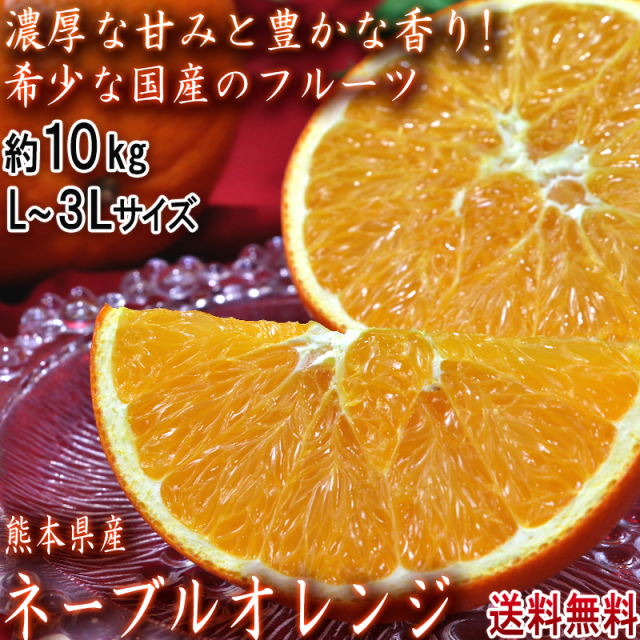 国産ネーブル 約10kg L〜3Lサイズ 熊本県産 個人農家産中心 甘い香りと抜群の味!種無しの果肉に濃厚な果汁