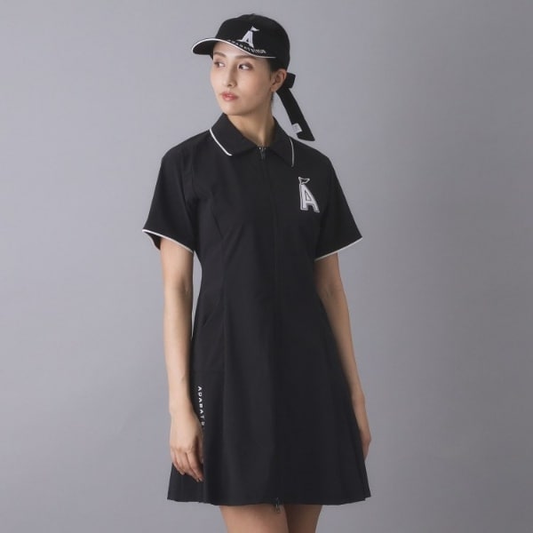 動きやすさと上品さを兼ね備えた、フルジップタイプの半袖ワンピース。
