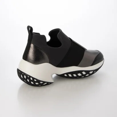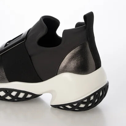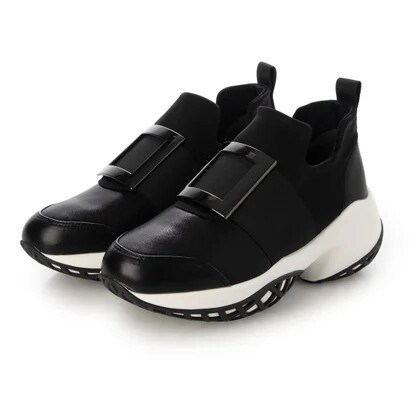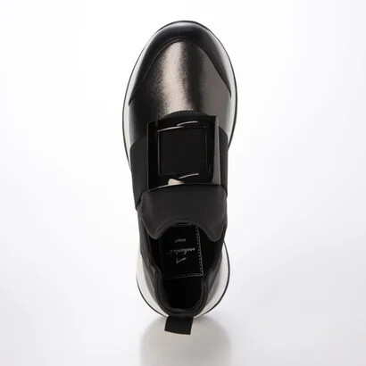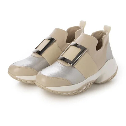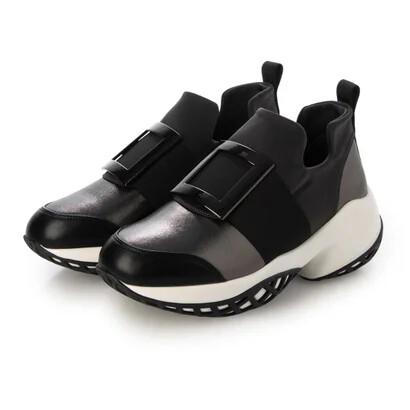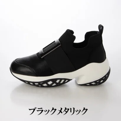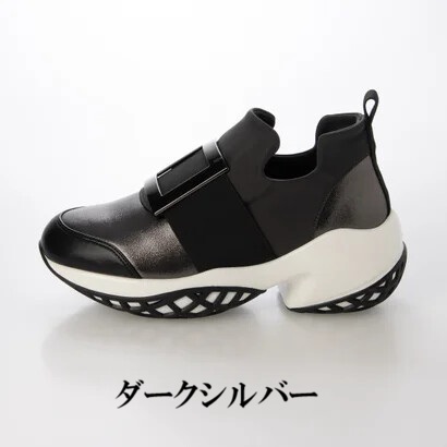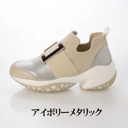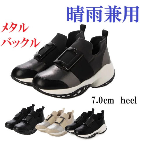カラーコンビに合わせたメタリックバックルがモードにきまる晴雨兼用スニーカー
