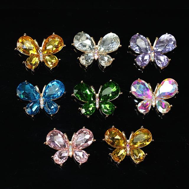 金属パーツ ストーン付き デコパーツ カンなしチャーム 蝶々 約10個 ハンドメイド